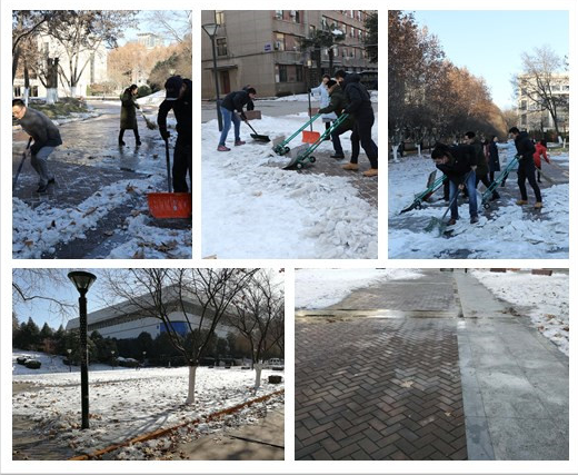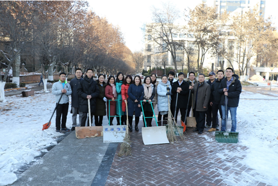 2018年1月8日下午,乐竞教工博士联合党支部召开组织生活会开展党员民主评议工作。会后,党员们在支部的倡议下纷纷走向户外积极清扫校园主楼西南角道路上的积雪。