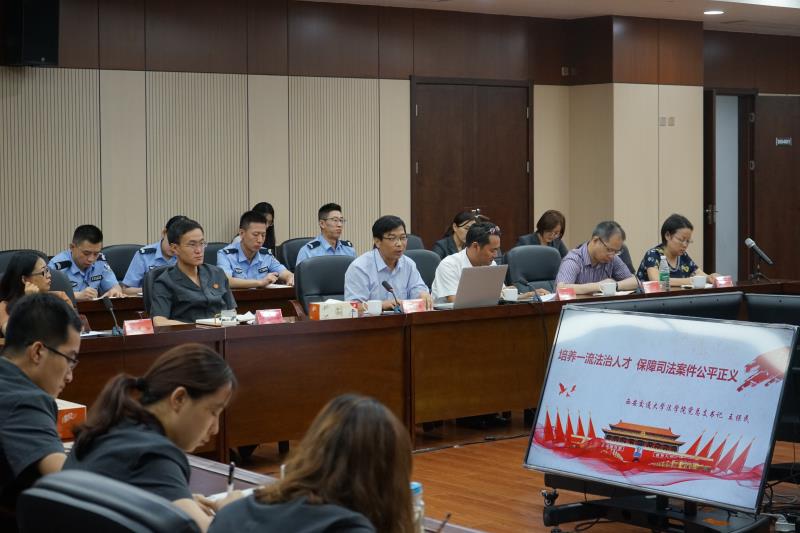乐竞党总支书记王保民教授以“培养一流法治人才,保障司法案件公平正义”为主题,阐述了法治人才培养对“努力让人民群众在每一个司法案件中感受到公平正义”的重要作用,并重点从“加强和改进高校思想政治工作,确保法治人才培养的政治方向;坚持立德树人,培养德法兼修的法治人才;坚持中国立场,关注中国问题,养成文化自觉和自信;创新高校与实务部门联合培养机制,提升实践能力”等方面讲述了如何培养一流法治人才。乐竞兼职辅导员、硕士研究生党柯分享了作为法科学生自己对公平正义的理解,学习习近平法治思想的体会和收获,讲述了党的十八大以来,国家深化司法体制改革,促进司法公正实现的方式。她表示,青年法科学子,应以追求公平正义为职责使命,德法兼修,努力为促进司法公正作出贡献。