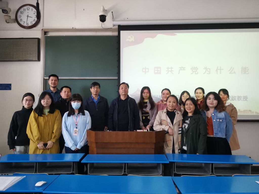 接下来,主讲人刘权政教授以中国共产党为什么‘能’为主题,从历史中找寻答案,回答中国共产党为什么‘能’,引导师生进一步坚定理想信念,牢记初心使命。刘权政教授从科学的理论指导、坚定的理想信念、强大的组织优势、坚实的群众基础、彻底的自我革命五个方面详细解读,以形象生动的例子向我们讲述中国共产党的奋斗历程,对中国共产党为什么能引领引领中华民族站起来、富起来、强起来进行深刻阐释。刘教授的讲授思路清晰、生动幽默,给大家留下了深刻的印象,党员同志们都表示收获颇丰、意犹未尽。
