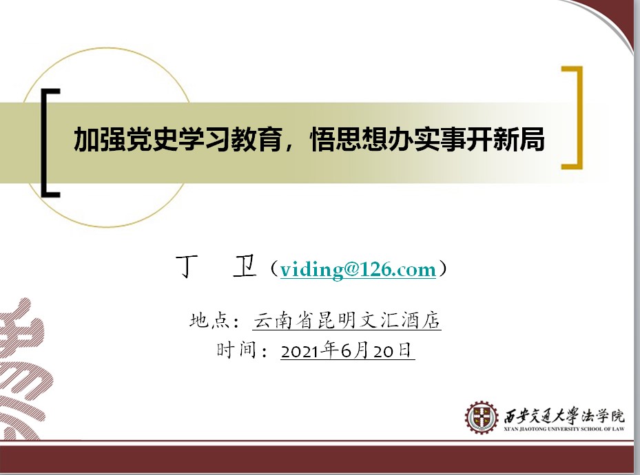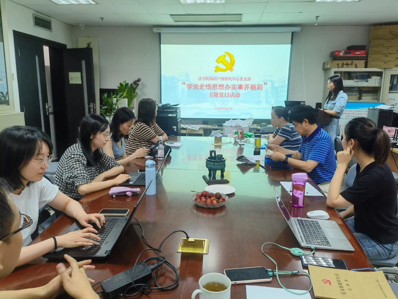6月20日,知识产权研究中心党支部开展了“学党史悟思想办实事开新局”主题党日活动,由联系支部的学院领导干部、乐竞副院长丁卫讲授党史学习教育专题党课。支部书记周方主持会议,支部全体党员参加了活动。
