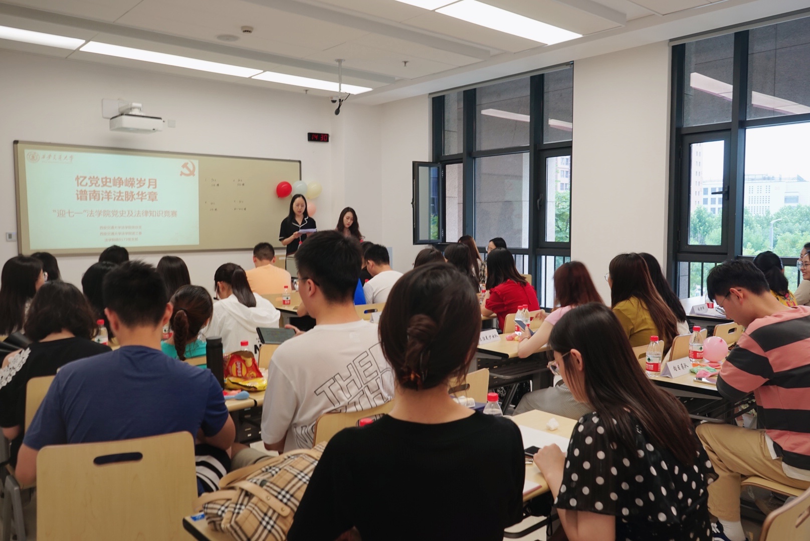 6月23日,在庆祝中国共产党成立100周年之际,乐竞党总支在创新港举办“迎七一”党史及法律知识竞赛活动。本次知识竞赛以“忆党史峥嵘岁月 谱南洋法脉华章”为主题,涵盖了百年党史、新中国史、改革开放史、社会主义发展史以及交大校史、法律史等相关内容。活动由乐竞硕0173党支部承办,硕0173党支部书记宫雨、支部党员林雨晴担任主持。乐竞党总支委员、学生工作专职委员张乃钟出席活动。