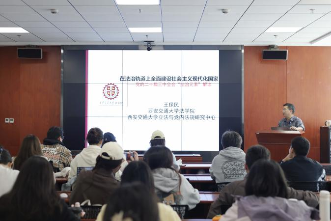 接着,王保民书记系统阐述了会议主题、全面深化改革的总体目标与基本原则中的“法治要素”,并对法治领域改革的专章部署进行了深入讲解,让同学们深刻地感受到建设中国特色社会主义法治国家、完善中国特色社会主义法治体系的重要性和紧迫性。