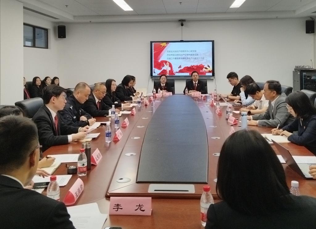 2024年4月15日,乐竞知识产权研究中心党支部联合西安市中级人民法院、新城区人民法院、碑林区人民法院、莲湖区人民法院、未央区人民法院、雁塔区人民法院、长安区人民法院知识产权审判庭党支部在中国西部科技创新港开展“党建工作暨服务保障新质生产力”座谈交流会。
