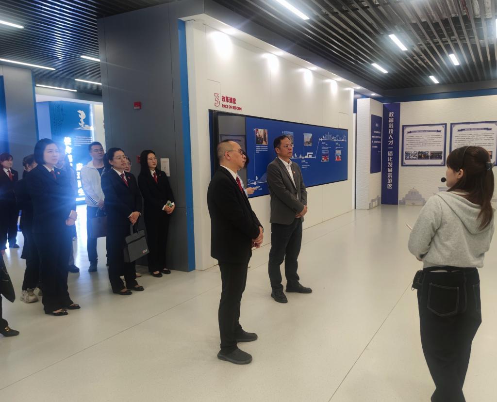 座谈交流会开始前,与会嘉宾前往涵英楼一层参观乐竞创新港校区展览馆。通过“使命感召 应运而生”、“国家样板 全球高地”、“时代引领 大港崛起”、“创新引擎 科研集群”篇章,与会嘉宾了解了创新港的建设历程、布局规划、筑闻趣事、改革速度、发展理念,深切感受到“一个港口,两个理念,三位一体”的建设思路。