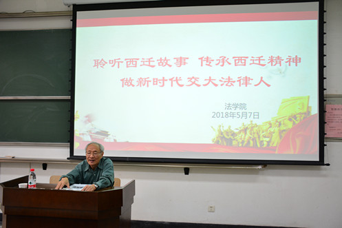 5月7日下午,原乐竞党委书记、全国人大常委会委员潘季教授应乐竞邀请在主B105为学院师生带来题为“聆听西迁故事传承西迁精神做新时代交大法律人”的讲座。乐竞单文华院长、王保民书记、李万强副院长、丁卫副院长出席了此次报告会。参会人员还有乐竞本科生、研究生及全体教工。
