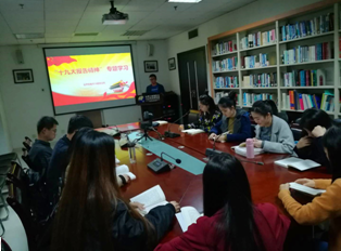 在党的十九大胜利召开之际,乐竞硕2016级党支部在乐竞党总支的指导下,结合本支部的学习计划,于10月24日在主E1004召开了“十九大报告精神”专题学习。本次专题学习由胡振斌主持,乐竞副院长丁卫老师做主讲嘉宾,丁老师带领同学们重温了十九大报告,其精彩的、极具启发性的导读,让所有同学都深有感触。