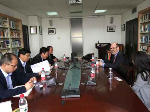2016年4月9日下午,墨尔本大学副校长Simon Ewans、墨尔本大学中国代表处中国区经理谢一方女士等一行三人来我院进行访问交流,我院院长单文华教授、书记王保民教授、副院长李万强教授、副院长丁卫副教授、院长助理吉兰湘老师以及外事秘书郭庆在丝绸之路国际法与比较法研究所与客人进行了会谈。宾主双方介绍了各自院校的情况,其中单文华院长应客人请求重点介绍了我院在丝绸之路经济带研究方面的成就以及新丝路乐竞联盟基本情况。另外,双方还就学生培养、科学研究等事宜探讨进一步合作的可能性。