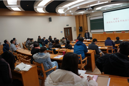 首先,单文华院长全面传达了王树国校长在寒假工作会议上以“爱国奋斗,无怨无悔,做好西迁精神新传人;时不我待,只争朝夕,开创学校发展新局面”为主题的报告,从整体上传达了学校2017年度所取得的成绩。同时,结合乐竞的实际工作,对学院在人才培养、科学研究、队伍建设、社会服务、国际合作与交流等工作中取得的进展进行了总结,重点分析了学院在教育部第四次学科评估、一级博士点申报等工作中的现状和进一步的奋斗目标。单院长对2017年度取得的成绩进行了充分肯定,对存在的不足深入分析了原因。