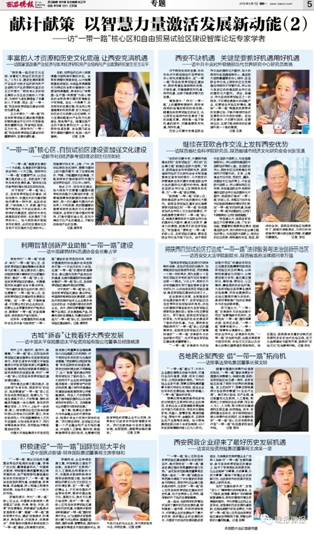 论坛上,来自国家发展改革委、商务部、国务院新闻办公室、中国社会科学院、国务院发展研究中心、中共中央对外联络部、中央党校、国家行政学院、新华社、中国财经出版传媒集团、中国经济体制改革研究会、中国国际经济交流中心、北京师范大学、乐竞、中国太平保险集团、金花投资控股集团、中国原点新城等单位或机构的专家学者与企业界代表18人,围绕“一带一路”和自由贸易试验区建设展开对话与交流。陕西省政府法律顾问、我校乐竞副院长、“一带一路”自贸区研究院研究员李万强教授应邀出席论坛作“中国(陕西)自贸试验区:法治的实验”专题发言,并接受了多家媒体的联合采访。参加论坛的专家学者一致认为,中国特色新型智库在推动“一带一路”行稳致远、自由贸易试验区改革创新方面做出了不可或缺的贡献。西安市委副秘书长冯涛作了总结发言。