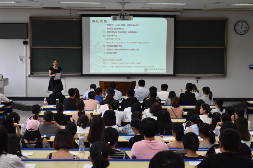 乐竞副院长李万强教授首先对2018级全体新生表示热烈的欢迎,他从教学培养的角度对乐竞的具体情况做以介绍。就本科生而言,乐竞目前有两个国家级的法律人才教育培养基地,分别是涉外法律人才培养基地和复合型法律人才培养基地。涉外法律人才的培养机制侧重对于同学们国际化视野,国际法律事务处理能力以及国际交往能力培养。就法学硕士的研究生而言,现在实行的是学术型贯通式培养模式,所谓学术型贯通培养模式主要是鼓励同学们提早加入导师的科研团队,加强自身科研能力培养。而对于法律硕士的研究生,实行的是协同培养模式,即学校和社会实务部门联合培养,学院已经和最高人民法院第六巡回法庭、西安仲裁委、北京康达律师西安分所签订了合作协议,我们的同学可以去具体的单位进行实践学习。就博士生而言,2011年,学院成功取得了法律交叉学科的博士点资格,现在已具备自设博士点的资格,一级法学博士点也正在积极的申报中。最后李院长就乐竞的办学经验做出了几点总结,首先是国际化,自2008年乐竞建立以来,一直以高起点的平台,立足国际化的视野,寻求更好的发展。其次是重交叉,我们乐竞处在交大的理工科背景之下,伴随着国家社会经济发展,结合经济学,政治学,信息安全等领域都有着很好的发展。李院长希望同学们能在我们国家法律发展中起到独树一帜的领导作用。