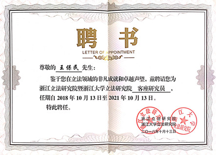 10月13日,首届之江立法论坛暨立法研究院学术委员会成员、客座研究员、兼职研究员聘任仪式在浙江杭州举办。论坛以“新时代地方立法”为主题,以推进立法领域高层次理论研究,提升立法研究水平,推动立法工作,以更好的适应新时代新要求。我校乐竞教授、立法与党内法规研究中心主任王保民受聘为“浙江立法研究院暨浙江大学立法研究院”客座研究员,并应邀作为与谈人在论坛上做了点评发言。