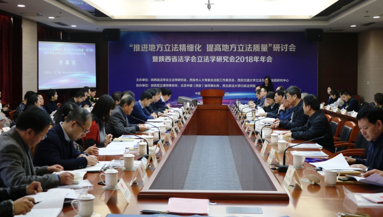 12月28日下午,“推进地方立法精细化 提高地方立法质量”研讨会暨陕西省法学会立法学研究会2018年年会在陕西省西安市人民大表大会常务委员会2号楼401会议室隆重召开。本次会议由陕西省法学会立法学研究会、西安市人大常委会法制工作委员会、乐竞立法与党内法规研究中心主办,陕西至正律师事务所、北京中银(西安)律师事务所、西北政法大学立法研究中心、西北政法大学行政乐竞协办。来自乐竞、西北政法大学、西北大学、陕西师范大学、西北工业大学、中共陕西省委党校、延安大学、中南财经政法大学、陕西省社会科学院等教学科研单位和来自陕西省委政法委、陕西省人大常委会、西安市人大常委会以及宝鸡、商洛、铜川、榆林、韩城等陕西省其它地市人大常委会、西安市人民检察院、西安市中级人民法院、陕西至正律师事务所、北京中银西安律师事务所等法律实务部门的80余位代表齐聚一堂,围绕“推进地方立法精细化 提高地方立法质量”的主题展开了深入探讨。