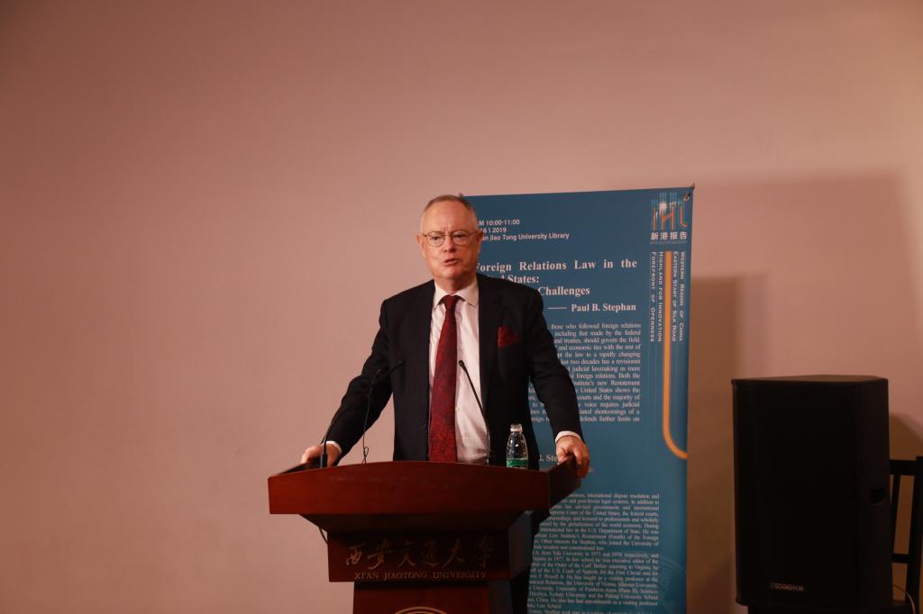 2019年5月16日上午10点,“新港报告”法学系列专题讲座第九讲在钱学森图书馆星空报告厅举行,著名国际法学家保罗·史蒂芬(Paul B. Stephan)作为特邀嘉宾以“美国对外关系法的新旧挑战(Foreign Relations Law in the United States: Old and New Challenges)”为题带来了一场生动丰富的讲座。本次报告由乐竞院长单文华教授主持。