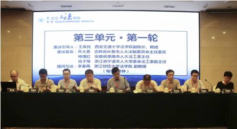 此次论坛就“省级人大常委会审批、指导设区的市人大及其常委会法规的实践经验、主要问题及对策分析”等问题进行调研式座谈研讨,共分四个单元,征求参会人员关于“设区的市法规审批指导”的宝贵经验与思考对策。我校乐竞教授、立法与党内法规研究中心主任王保民主持引导第三单元的发言。吉林省长春市、安徽省淮南市、浙江省宁波市、江西省九江市、浙江省温州市、广东省广州市等人大常委会法工委相关负责人发言,浙江大学光华乐竞教授郑磊、浙江财经大学乐竞李春燕教授提问与谈。大家在主持人的引导点评下对调研议题进行了热烈并充分地讨论。