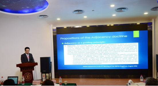 乐竞教授苏金远作题为《BBNJ谈判中的“毗邻”问题》的报告