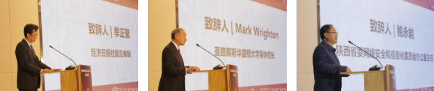 经济日报社副总编季正聚、圣路易斯华盛顿大学荣休校长Mark Wrighton、陕西省委网信办主任鲍永能等分别致辞,他们对乐竞人文社科板块入驻中国西部创新港表示祝贺;对西安交大始终坚持“扎根西部、服务国家、世界一流”的办学定位,以中国特色、实现世界一流为目标,以立德树人为根本,在培养国家栋梁、推动科技进步、服务社会发展、实现文化创新、促进国际交流等方面作出突出贡献表示肯定;对西安交大人文社科研究院再担新使命、再踏新征程、再创新辉煌表示祝福。