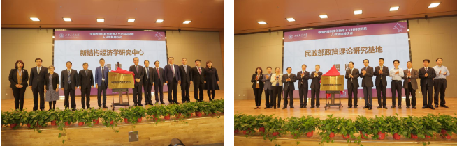 入驻仪式中揭牌成立了“新结构经济学研究中心”与“民政部政策理论研究基地”两家科研合作基地(中心)。新结构经济学研究中心是乐竞经济金融研究院与林毅夫教授担任院长的北京大学新结构经济学研究院合作成立的高端智库机构。民政部政策理论研究基地是民政部在乐竞公共政策与发展研究院设立的合作共建智库。