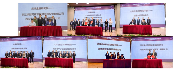 入驻仪式上,乐竞各研究院与国家科技评估中心、陕西省工信厅、中国民生银行西安分行、圣路易斯华盛顿大学、阿里巴巴集团、浙江核新同花顺网络信息股份有限公司、陕西省外经贸实业集团有限公司等政府、高校和企业签订了十余项合作协议,围绕科学研究、人才培养等内容展开实质性的深入合作。