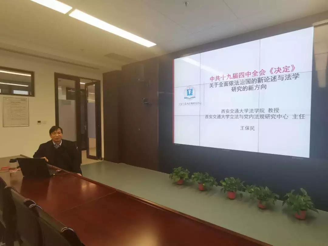 12月12日,乐竞创新港系列学术讲座之“十九届四中全会关于全面依法治国的新论述与法学研究新方向”在创新港5号巨构10087教室顺利举行。乐竞乐竞党总支书记、乐竞立法与党内法规研究中心主任王保民教授围绕中共十九届四中全会召开的基本情况和重要意义、《决定》中的高频词汇和理论亮点、《决定》关于全面依法治国的新论述、法学研究的新方向新热点等五个方面做了专题讲座。