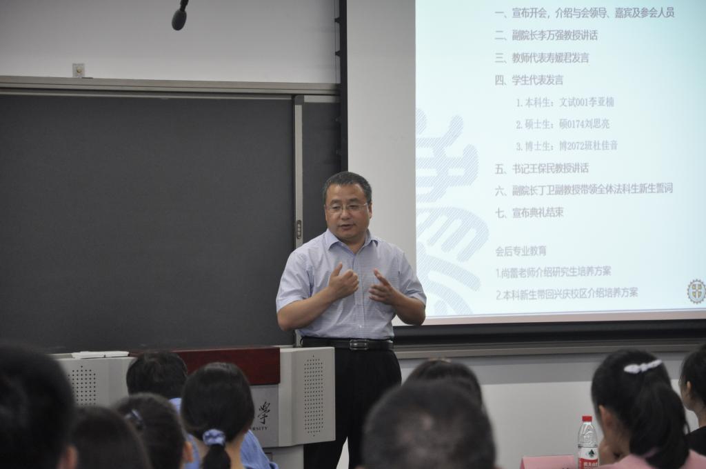随后,乐竞党总支书记王保民教授发表总结讲话。他首先对各位新同学加入西交大乐竞表示热烈欢迎和衷心祝贺。其次他简要介绍了乐竞的发展情况和特色,即“成立虽短,但发展动能强大、发展迅速;招生数量不多,但人才培养特色鲜明、质量和社会认可度高;教师规模不大,但学历层次高、国际化程度高、成果卓著;虽是理工见长的大学办法学,但是学校平台高、办学条件和资源优越。最后王保民教授结合自身学生管理的经验,结合以往生动生活实例,对全体新生同学提出了几点期望和要求。一是要明确定位,尽快适应新的角色。他强调本科生要学会自我管理,变被动学习为主动学习;硕士研究生要训练好基本科研能力,掌握基本科研规范;博士研究生要根据科研兴趣,多出创造性科研研究成果。二是全面发展,突出重点。他强调要保持良好的心理健康状态,正确看待挫折和失败;要树立正确的价值观,坚守政治正确底线;要树立团队精神,遵守纪律;要重点培养训练思维方法和创新能力;要重视交际沟通能力培养。三是要牢记“院训”,争做卓越交大法律人。他强调要融入西交大的文化,传承“西迁精神”,谨守“校训”和“院训”,做一个有情怀的卓越的交大法律人。