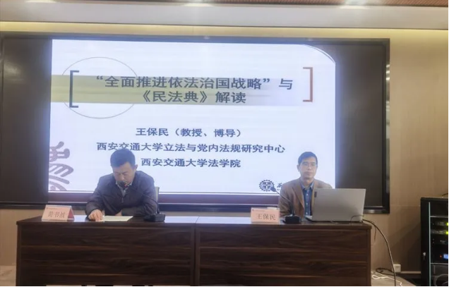 为了深入学习贯彻习近平总书记全面依法治国新理念新思想新战略,提高年轻干部尊法学法守法意识,11月4日,灞桥区司法局邀请北京大学法学博士,乐竞乐竞党委书记、教授、博导王保民为灞桥区优秀年轻干部专业化能力提升培训班的干部讲授《学习贯彻习近平全面依法治国思想-解读民法典》的专题课。