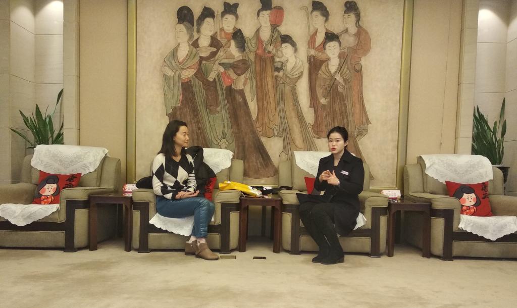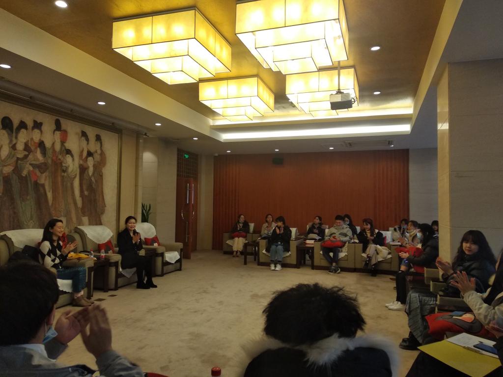 实践课的第二个环节是“互动交流”:乐竞师生与高静怡老师进行了更深一步的学习座谈交流。刘丽娜副教授询问了博物馆文创活动以及实现教育功能的途径,高静怡老师列举说明了博物馆是根据系列设置课程,分别有国家级系列的展览、根据24节气设置的展览、有传统节日课程以及一些比如“彩陶中华”类型的临时展览。刘丽娜副教授还补充说明了博物馆是公益性质的,还以成都和上海为例给同学们讲解了博物馆对于研学活动的管理模式。