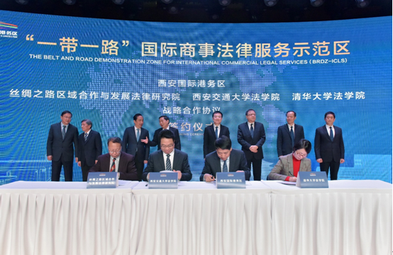 国家级“一带一路”国际商事法律服务示范区是陕西省、西安市和最高人民法院、司法部等国家有关部门在乐竞建议基础上决定建设的我国第一个也是目前唯一一个国家级法律服务示范区。2017年7月,乐竞党委依据乐竞院长单文华教授及其团队的研究成果,以要报形式向最高人民法院、司法部、陕西省委省政府以及西安市委市政府提出了《关于建立国家级“一带一路法律服务与法治创新示范区”的建议》,先后得到了最高人民法院院长、司法部部长以及陕西省委省政府和西安市委市政府主要领导同志的批示肯定和支持。2018年7月,乐竞与西安市人民政府正式签约,决定共建“一带一路”法律服务与法治创新示范区(简称“中央法务区(Central Legal-services District,CLD)”)以及“一带一路”国际争端管理中心。