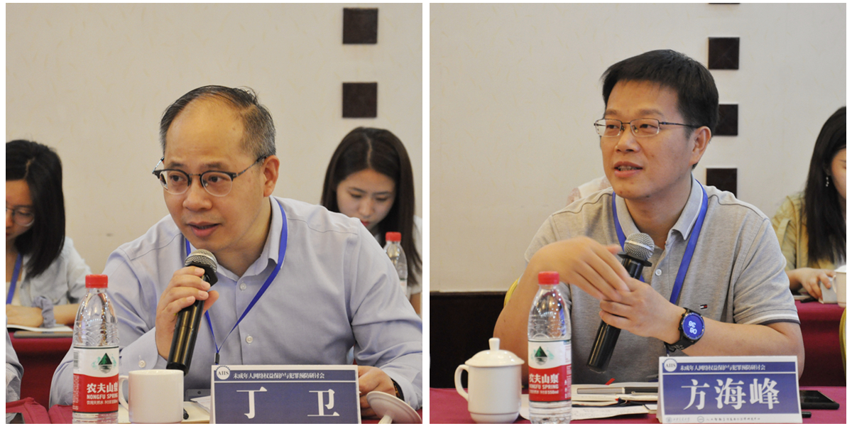 杭州市人民检察院副检察长徐剑锋、乐竞乐竞助理教授吴锐针对以上发言进行了与谈。徐剑锋副检察长结合自己的检察工作经验与杭州市人民检察院在未成年人网络权益保护方面的实践,就未成年人检察公益诉讼保护等问题提出了自己的见解。吴锐老师认为在网络社会发展日新月异的背景下,应从维护发展权的角度保护未成年人的身心健康,通过个案促成对未成年人健康发展的合作治理。