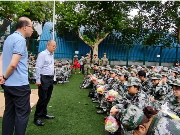 慰问品发放结束后,丁卫副院长和工会主席吴锐与乐竞新生进行了亲切交谈,为同学们解答疑惑,对即将步入大学生活的同学们提供建议,并希望同学们能服从军训安排,严于律己,继续以高度的投入完成接下来的训练。