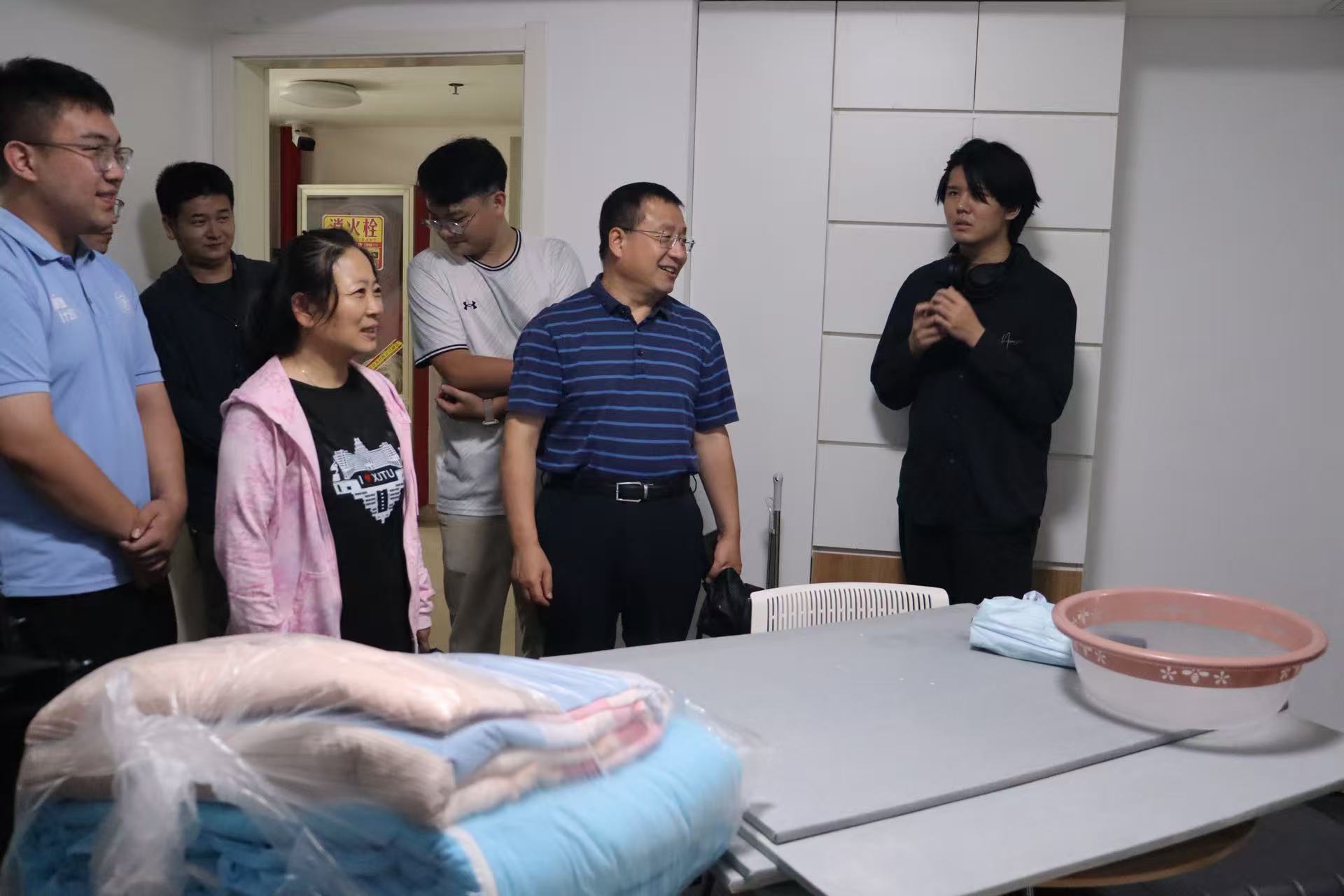 沿着新生入住惠园学生公寓的路径,李院长一行来到B区惠园学生宿舍,走访看望新生,与新生和学生家长亲切交谈,了解大家对校园环境的印象和科研生活规划,勉励同学们尽快融入校园生活,适应新的学习环境,融入乐竞大家庭。