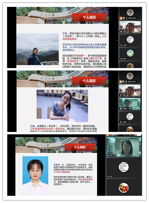 突如其来的疫情改变了2020届毕业生的就业计划和安排,给毕业生顺利就业造成了巨大的压力。对此,乐竞高度重视毕业生就业情况,并结合自身专业特点和学生就业意向,积极开展学生就业指导工作,及时询问关怀学生的就业情况。在选调生选拔中,我院今年超额完成学校的指标,取得了良好的成绩。6月9日晚,乐竞举办了2020届选调生就业经验交流分享会,邀请了乐竞王恬、王璐、彭慧秀和王慕四位优秀的选调生在线分享就业经验,为创新港的研究生答疑解惑,帮助学生提早统筹就业安排,以更好应对未来工作和行业需求。本次分享会由乐竞研究生会副主席苗青主持。