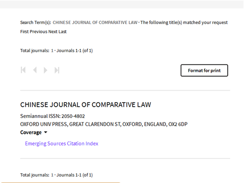 Recently, The Chinese Journal of Comparative Law published by Oxford University press, sponsored by XJTU, was selected into The "Emerging Sources Citation Index (ESCI) database of Clarivate Analytics (original Thomson Reuters IP & Science). This is the second law publication to enter ESCI in China, and the first one to enter ESCI in our liberal arts. The inclusion marks the further international recognition of the academic quality and influence of The Chinese Journal of Comparative Law, laying a solid foundation for inclusion in the "social science citation index" (SSCI) database.
