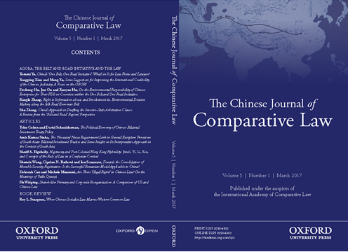 Established in 2013, The Chinese Journal of Comparative Law is the first comprehensive English law journal jointly established by Oxford University press and the Chinese academic community, and the first international professional journal of comparative law supported by the international academy of comparative law. The Chinese Journal of Comparative Law (CJCL) is an independent, peer-reviewed, general comparative law journal published under the auspices of the International Academy of Comparative Law (IACL) and in association with the Silk Road Institute for International and Comparative Law (SRIICL) at Xi’an Jiaotong University, PR China. CJCL aims to provide a leading international forum for comparative studies on all disciplines of law, including cross-disciplinary legal studies. It gives preference to articles addressing issues of fundamental and lasting importance in the field of comparative law.